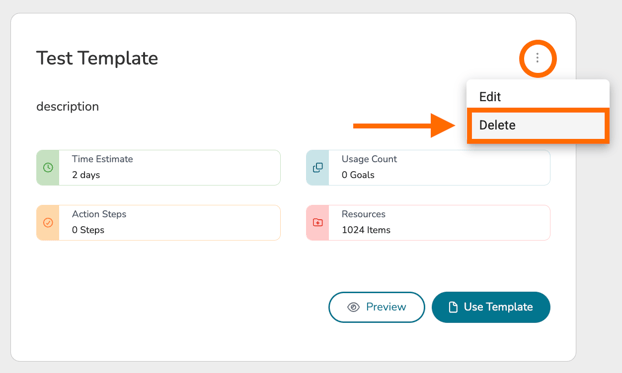To delete a goal template, click on its '...' icon and select 'Delete.' Doing so will delete the template from being used in your system.