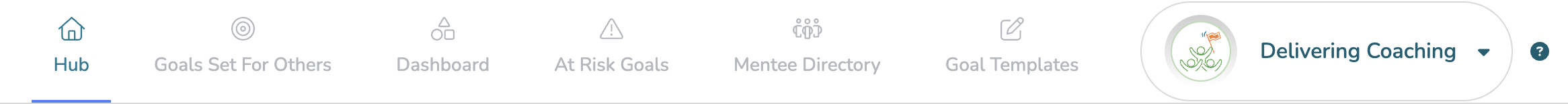 If you have access to Delivering Coaching and wish to view goals assigned for you, simply click on the 'Delivering Coaching' button. This will display the option to switch to your other Coaching Mode experiences. Click 'Receiving Coaching.'