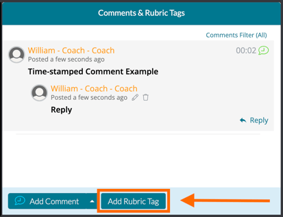If you would like to comment on the rubric tag further, please click on the 'Reply' button found underneath your posted rubric tag. This will function as a response thread to the posted rubric, much like replying to a regular time-stamped comment.