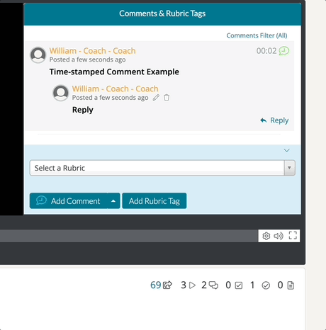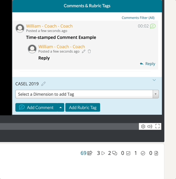 Along with leaving a Time-Synced Comment on videos, you can also leave time-synced Rubric Tags. Rubric tags utilize the Domains and Dimensions of your rubric templates, and they can be a great way to check off the progress others are making to meet their goals.