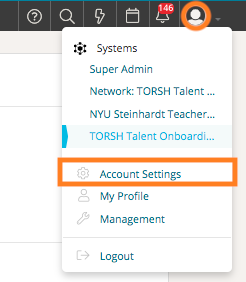 To set up Automatic Sharing, click on your 'profile icon' in the top, right-hand corner of Talent and then select 'Account Settings' from the dropdown menu.