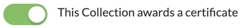 To display the cumulative units awarded for completing the course on your certificate, click the toggle for 'Show earned units' to display as GREEN/ON.