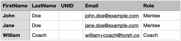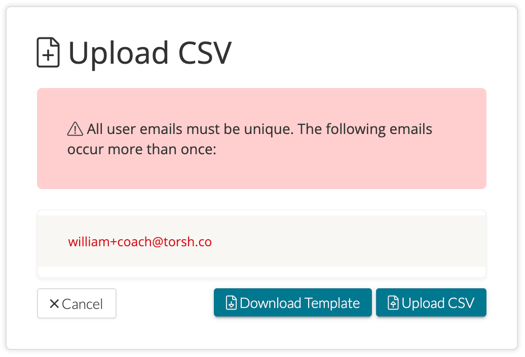 • There cannot be more than one of the same email on the CSV.