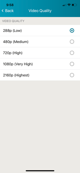 You'll then be able to set your desired video quality. Please note that the higher you set your video quality, the longer it will take for your video to upload due to the increased file size. It is recommended to keep it at 288p (Low).