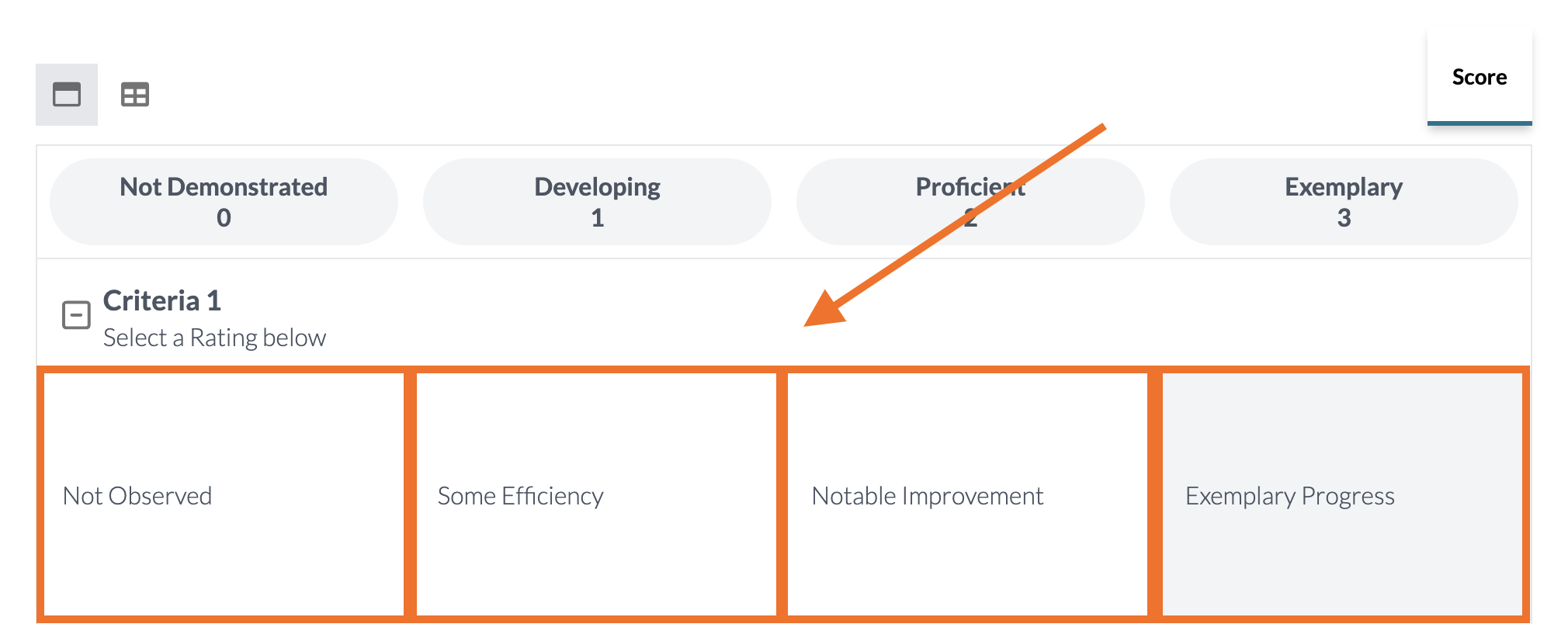 Depending on the settings of the rubric template used, you may see an Overall Score displayed at the top of your rubric.