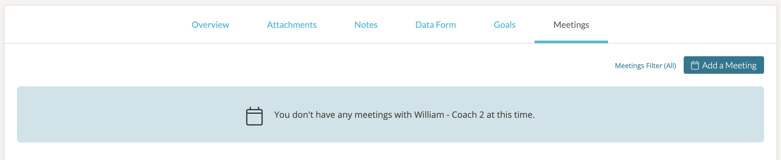 Meetings - To schedule a meeting for a debrief of the self assessment, choose 'Meetings.' You can click 'Add a Meeting' to create a new meeting or filter the meetings listed in this view.