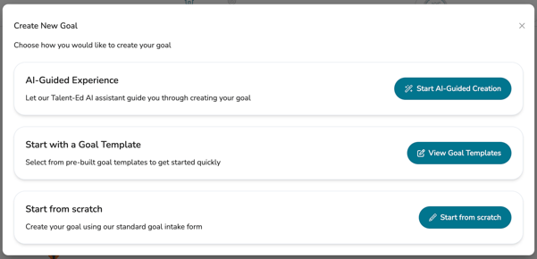 - AI-Guided Experience - Create a goal through an AI-guided experience (only available via the Goals AI Assistant add-on). Learn more here .
