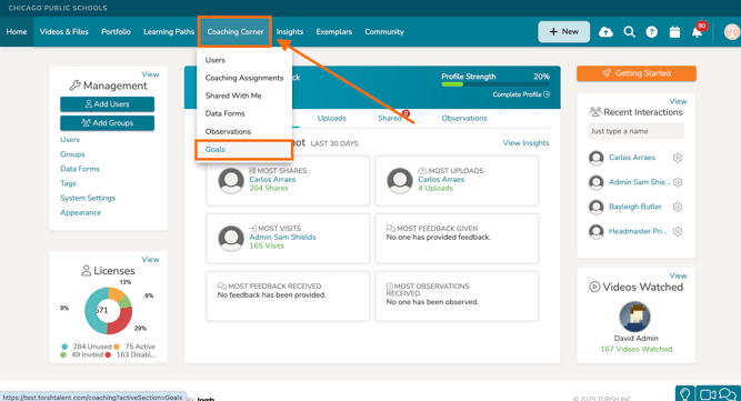 Or you can do so by first selecting 'Coaching Corner' in your top navigation bar. From there, click 'Goals.'