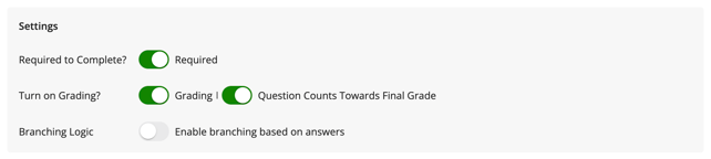 We have assembled a couple of example Pathways below. Do note that in order for Completion Pathways based on graded outcomes to work, you will need to enable Grading and Question Counts Toward Final Grade for all quiz components in your module.
