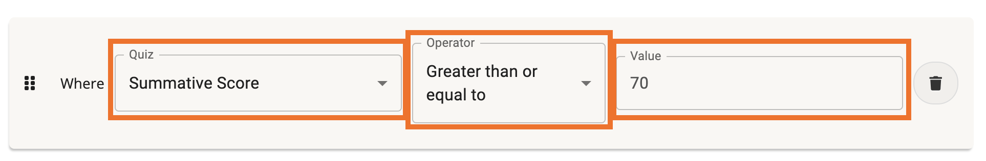 - Outcome - Where your learner is routed after achieving the Condition you set.