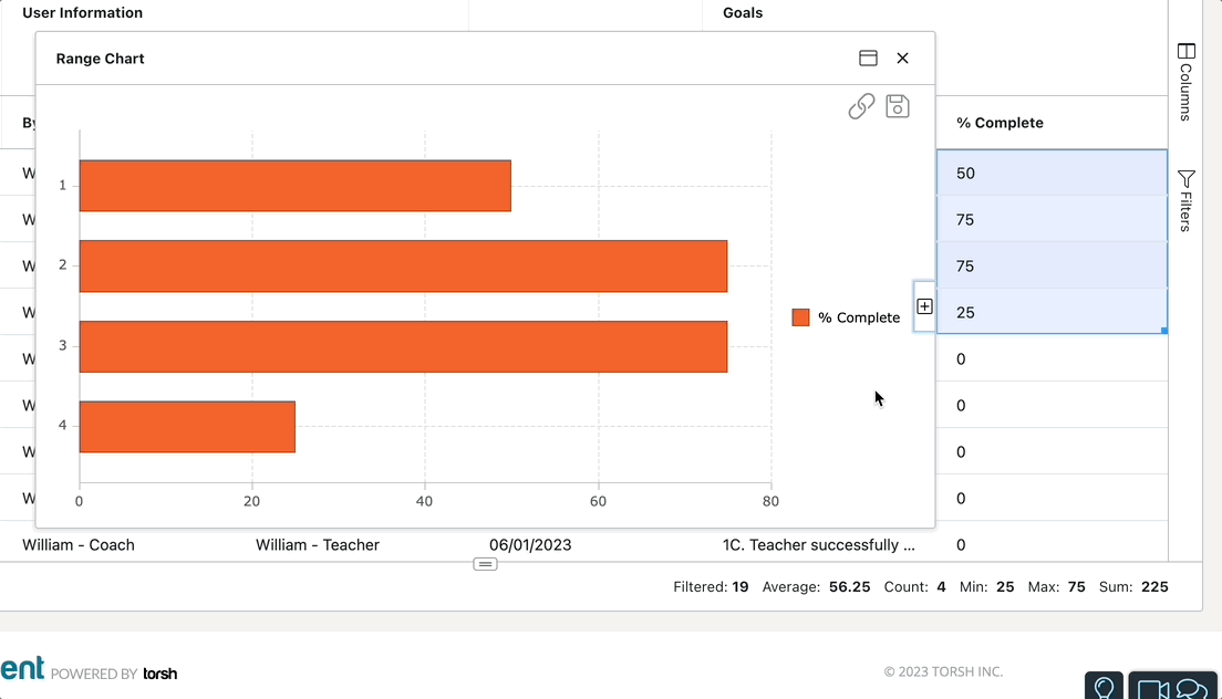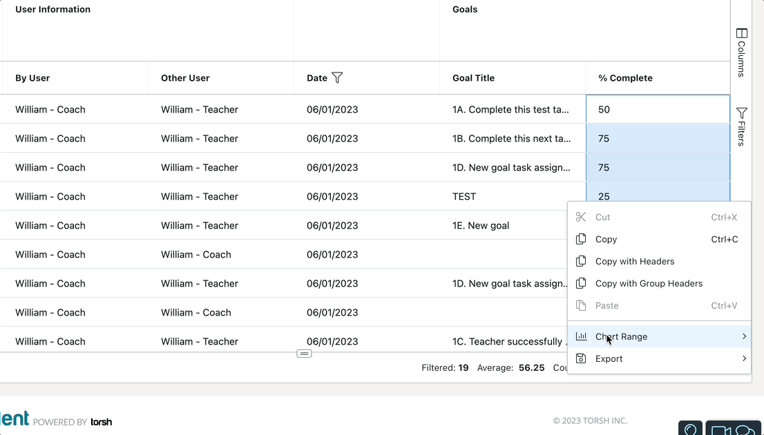 Using Report Builder, you can also display live charts and graphs! For the best results, highlight a column with numeric data listed, then right-click on the selected data (for Mac users, make sure you have ‘Secondary Click’ enabled in the System Settings of your computer; CTRL-click will not work, but a two-finger tap on your trackpad will!).