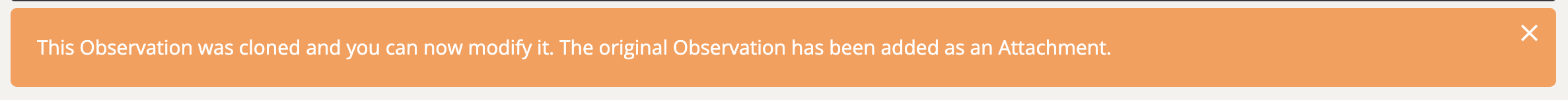 This will take you to the page of the cloned observation, displaying the message at the top: