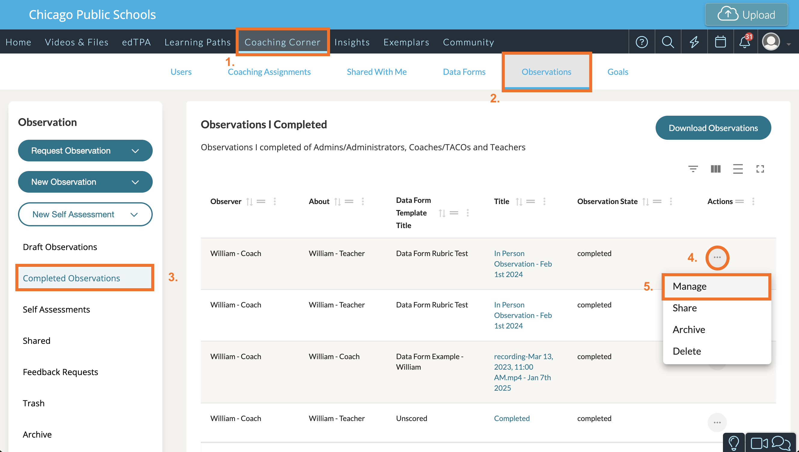 To duplicate an observation, first navigate to Coaching Corner. Next, click the 'Observations' tab.