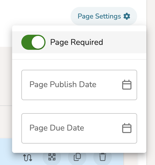 To mark your quiz page as 'Required,' look to the top, right-hand corner of the module page and click the 'Page Settings' button. In the dropdown that appears, toggle the 'Page Required' button to ON.