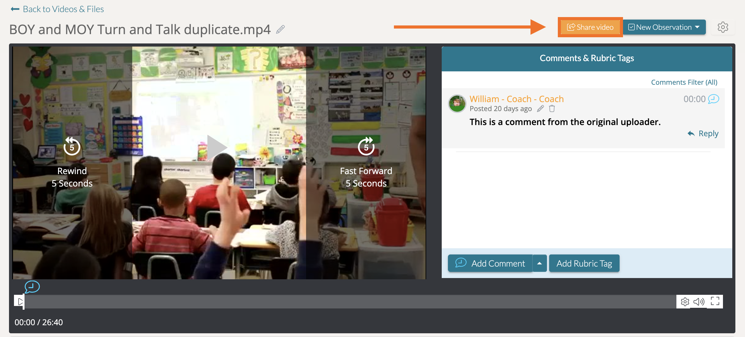 First, visit your Videos & Files page via the top navigation bar. Then open the artifact you would like to share. In the top, right-hand corner of your artifact, click the 'Share' button.