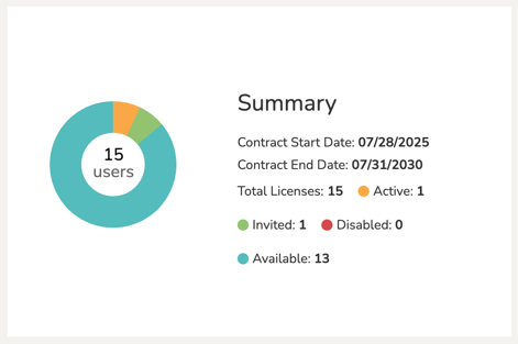 - Available - the current Available license count for licenses that have yet to be utilized by active or invited users in your system.