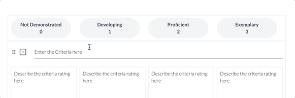• Dimension (Criteria) - The criteria specified within each component. These criteria act as the designation for each row in a Rubric Grid. Oftentimes, these criteria will be graded along a scale that you can label and adjust the scoring value of.