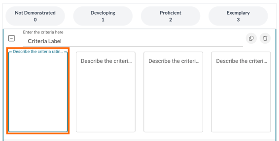 Enter the general description for each Criteria Rating option within each box that reads 'Describe the criteria rating here.' You can be as short as detailed as needed!