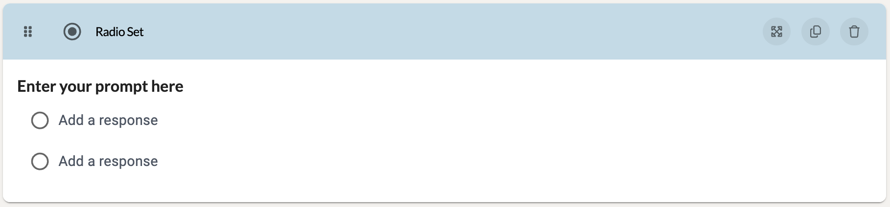 The Radio Set component allows users to choose one item from a set of radio button inputs. These can be useful when creating a multiple choice questionnaire.