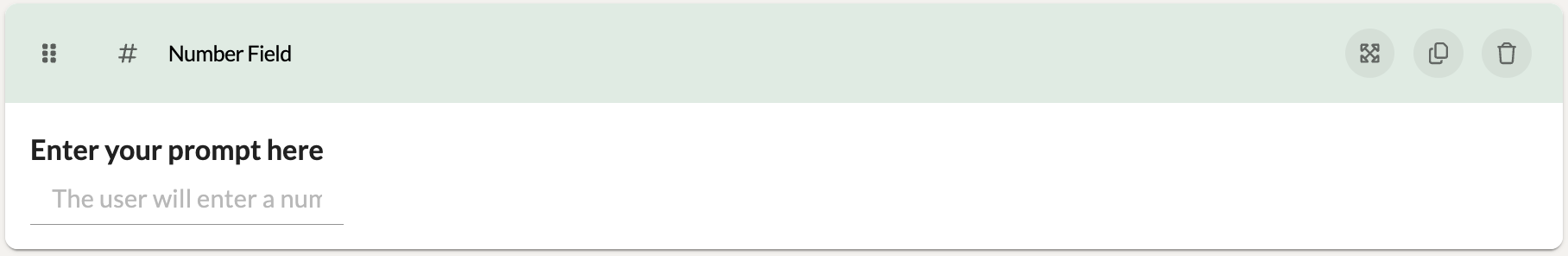 A Number Field component allows participants to enter only numeric data into the text space provided. This text space will not accept alphabetical text. This can be useful when asking participants to keep track of specific numeric counts!