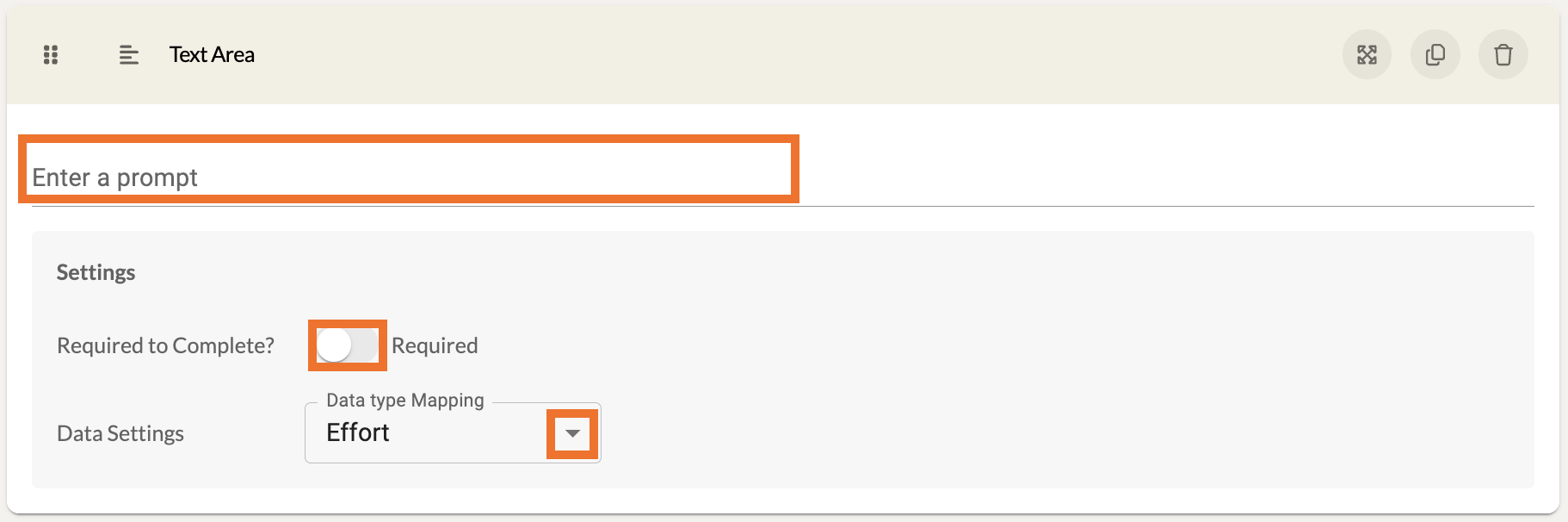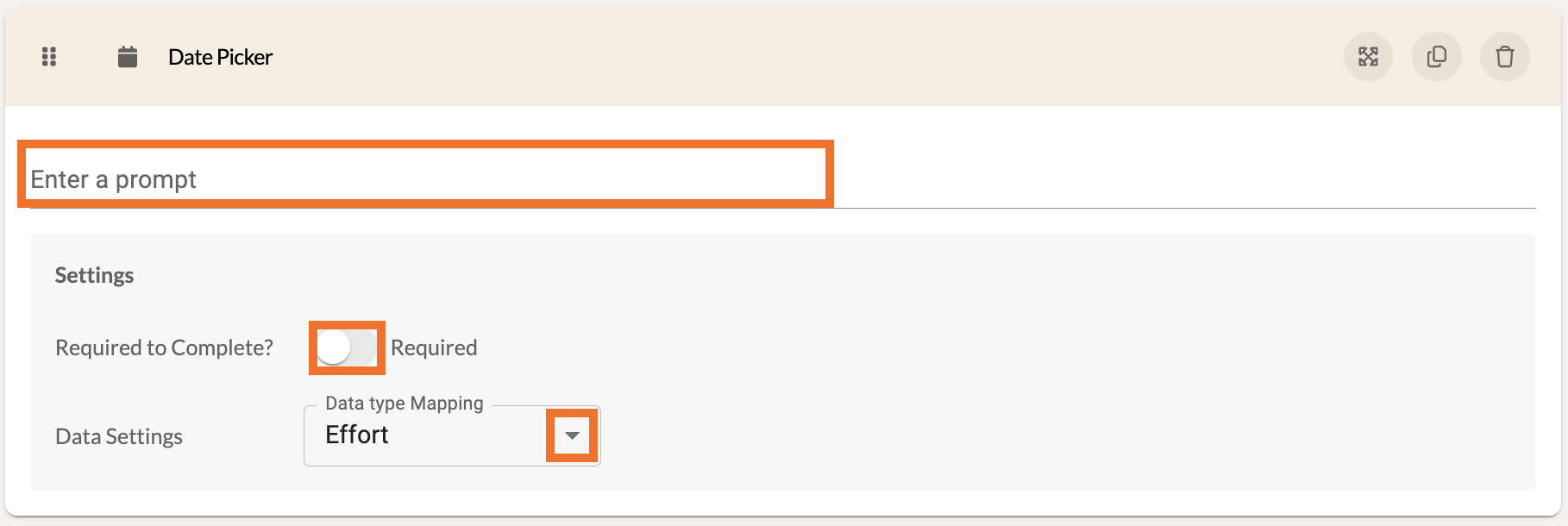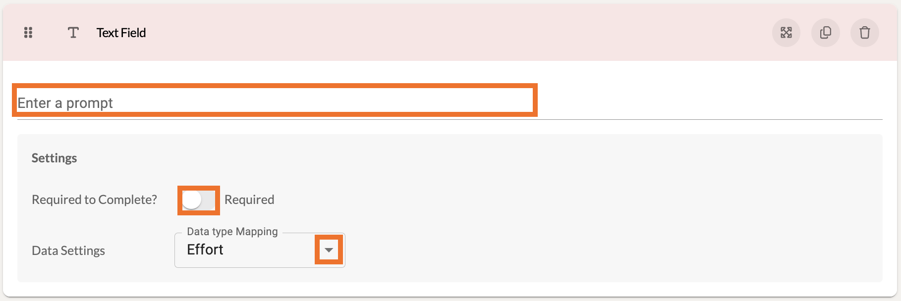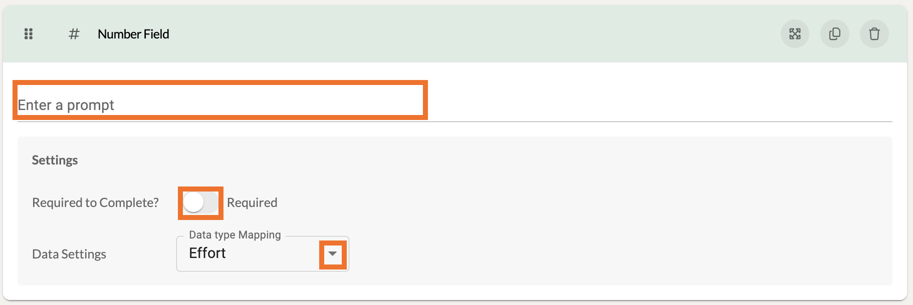 For most components, you can adjust the Data Type Mapping . This is not necessary to determine, but it can be useful for organizations that wish to track effort, fidelity, and impact data.