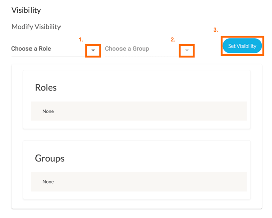 Lastly, you can select the visibility of who can select your template by Role and by Group. Click ‘+Set Visibility’ to save your changes.