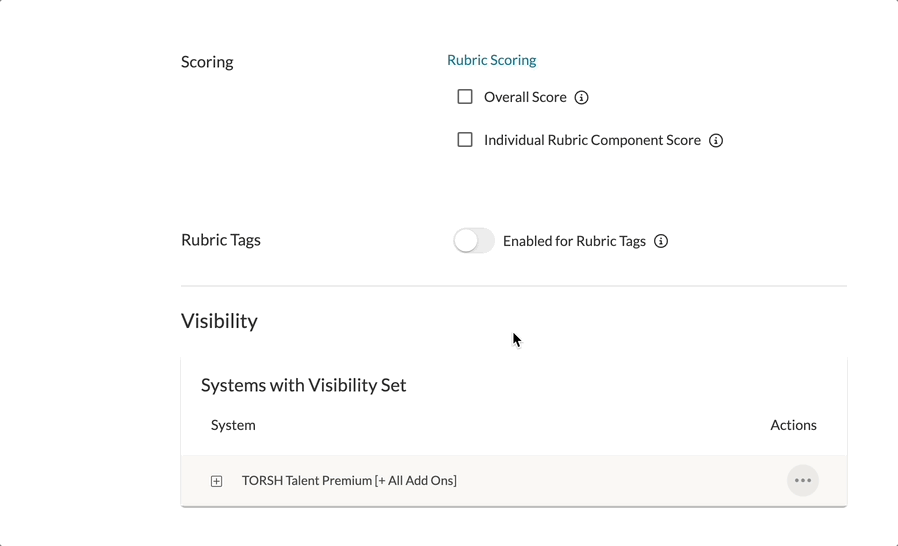 For Rubric Scoring, you can check off whether or not you would like to display the Overall Score to the rubric and/or the Individual Rubric Component Scores