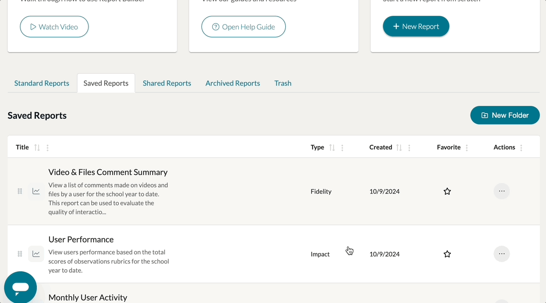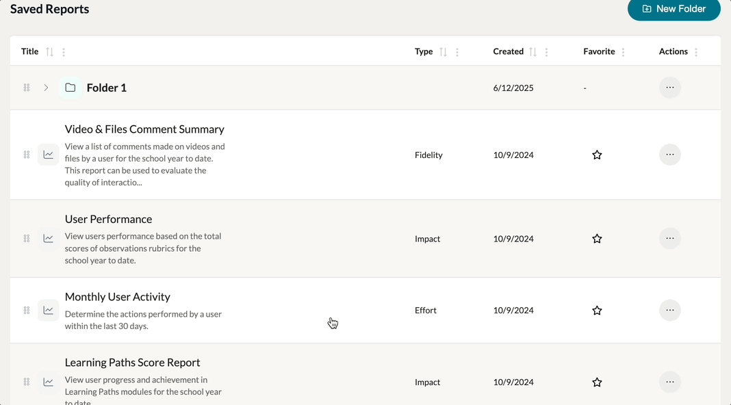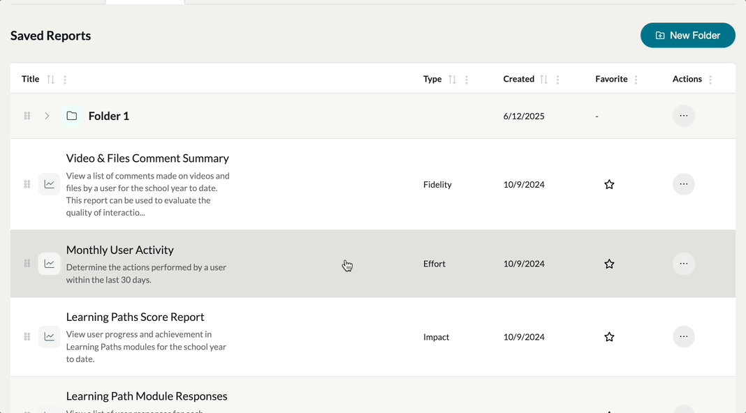 Within Report Builder, you can organize your custom reports in a variety of ways, including sorting, favoriting, and distributing your reports across folders and subfolders!