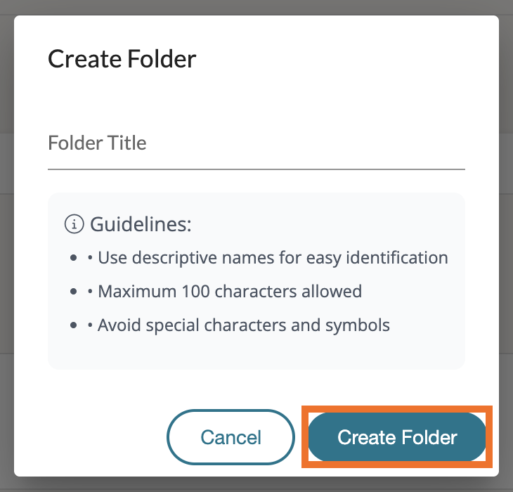 2. In the pop-up that appears, give your folder a title. Then click 'Create Folder.'