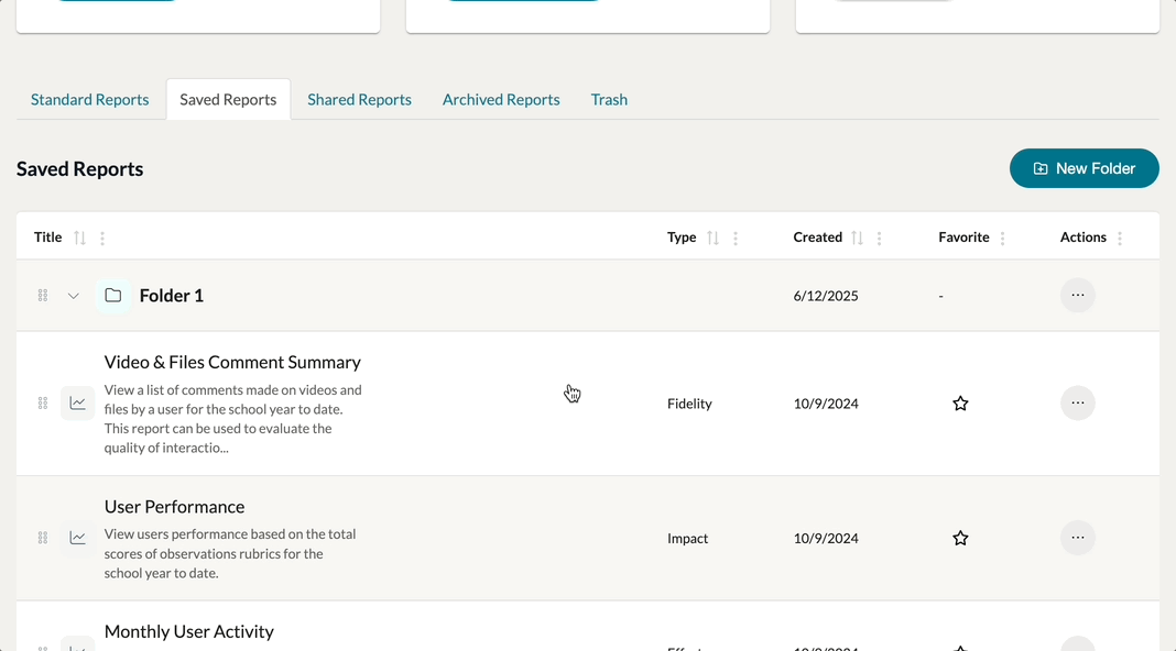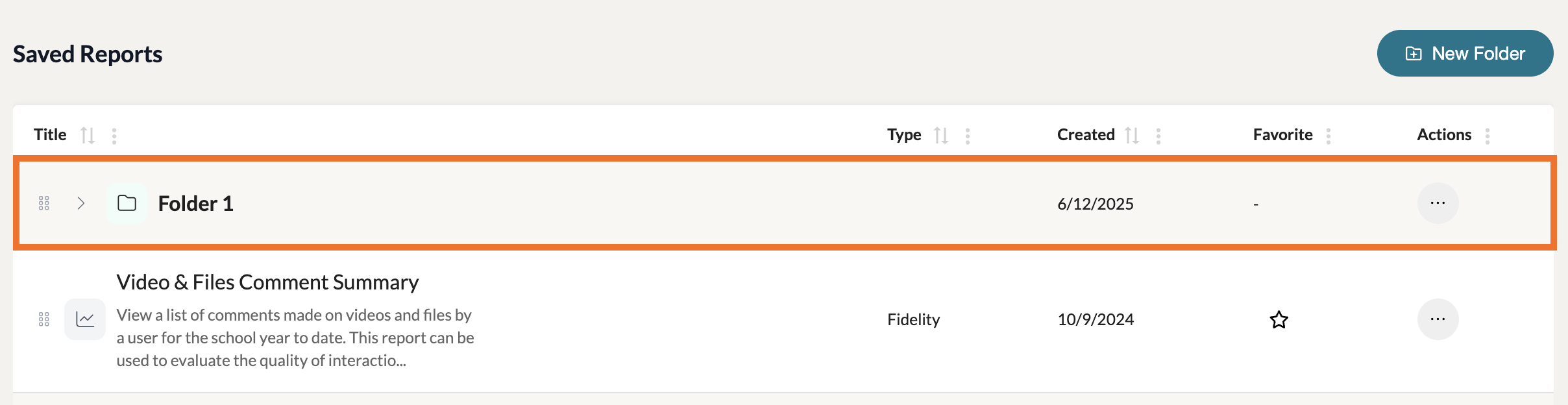 3. Your folder will appear at the top of your Saved Reports. It will be unaffected by title sorting and cannot be favorited.