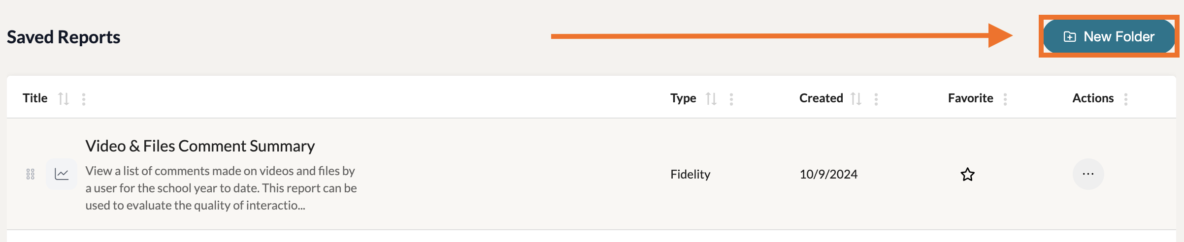 1. First, create a folder by clicking the 'New Folder' button in the top, right-hand corner of your Saved Reports.