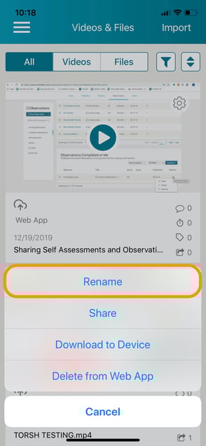 How to rename a video or file in the TORSH Talent Mobile App