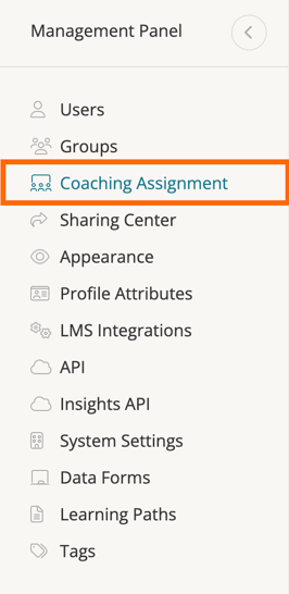 On the Management Panel page, click the 'Coaching Assignment' option on the far left side panel.