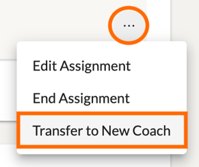 Scroll to the far right of the specific assignment and click on its '...' icon to open up some options related to the assignment. Click 'Transfer to New Coach.'