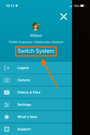 To switch systems in the mobile app, first open the TORSH Talent mobile app and login. Then, tap on the 'menu icon' in the top, left-hand corner and choose 'Switch System' in the menu.