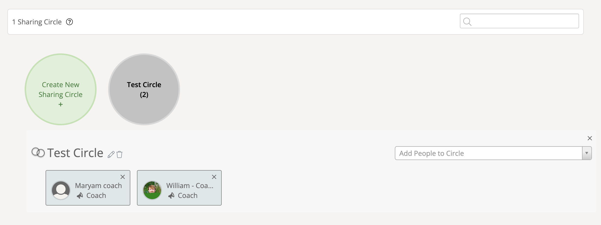 Next, click on the 'pencil icon' beside the ‘New Circle’ to edit the name of the sharing circle. Use the dropdown menu to select your colleagues to add to the sharing circle. Your changes will automatically save!
