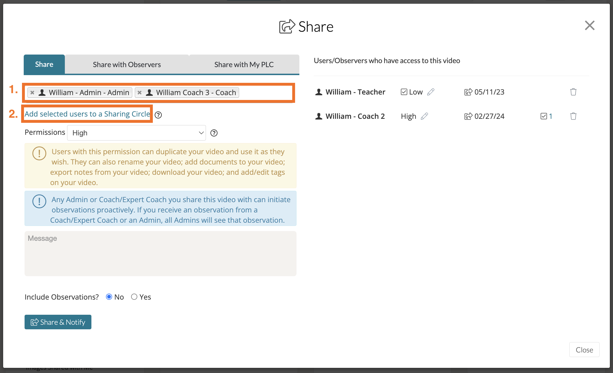 Click ‘Share & Notify.' The next time you share a video in Talent, you will be able to select this sharing circle. You can also edit this sharing circle any time from your Community page in Talent.
