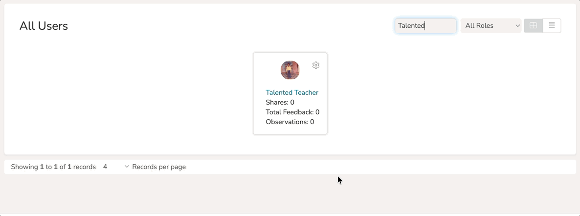To add a user from All Users into your 'Recent Interactions' list, hover over the user's 'gear icon' in the All Users table and select 'Add to Recent Interactions' from the dropdown menu that appears.