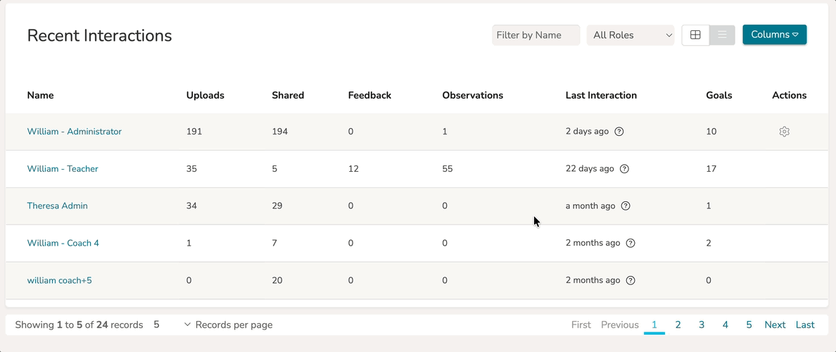 When you go to Coaching Corner, you will see a list of Mentees that you coach and collaborate with most often in the 'Recent Interactions' list. This list populates users based on recent user activity with you - such as uploading or sharing videos and files, providing feedback, setting goals, and performing observations.